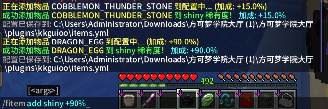 可用稀有度:common(普通), uncommon(罕见), rare(稀有), epic(史诗), shiny(闪光), legendary(传说), gigantic(巨大)