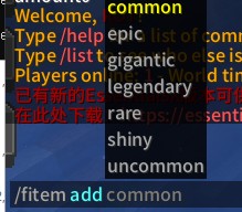 可用稀有度:common(普通), uncommon(罕见), rare(稀有), epic(史诗), shiny(闪光), legendary(传说), gigantic(巨大)